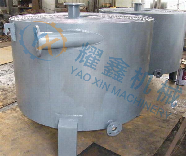 2、在殼體上的接管采用切向結構,局部阻力小,由于螺旋通道的曲率是均勻的,液體在設備內流動沒有大的轉向,總的阻力小,因而可提高設計流速使之具備較高的傳熱能力。